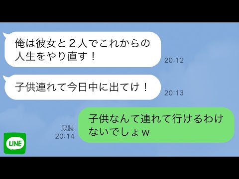 【LINE】15年連れ添った夫が突然の浮気宣言「俺は彼女と再婚する!」「お前は子供二人連れて今日中に出てけ!」私「子供は連れてけないよw」→実は…