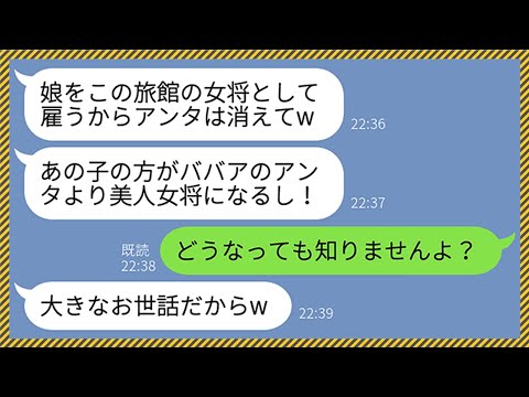 【LINE】15年間老舗旅館で女将を勤めた私を突然クビにしたオーナー夫人「娘を雇うからアンタは消えてw」→お望み通りに退職したら3ヶ月後、旅館が潰れた結果…www【スカッとする話】 動画にスカッ!として頂いた方は高評価、コメントを宜しくお願いします^^