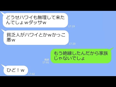 【LINE】3年前、私の婚約者を奪った妹と新婚旅行のハワイで偶然再会!妹「貧乏人がハワイw」→再び略奪しようとしたアフォ女の末路w【総集編】