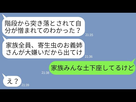 【LINE】39歳で実家に暮らす私を寄生虫と見下して階段から突き落とした弟嫁「家族のお荷物は出ていけ!」→勝ち誇るクズ女が真実を知ったら真っ青にwww