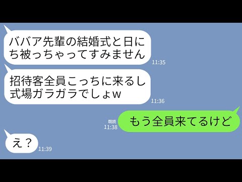 【LINE】39歳の私をババア呼ばわりしてわざと結婚式を被せてきた会社の若さ自慢の後輩女「全員こっちに来るってw」→式当日、マウント女が真実を知って絶望することにwwwって動画が話題らしいぞ