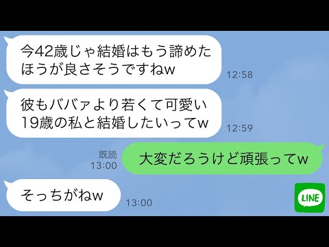LINEで【LINE】42歳で結婚が決まった私から結婚式の最中に新郎を奪った19歳の新入社員「ババァじゃ奪うの楽勝w」→その夜、新郎の真実を知った勘違い女からSOS連絡がwww出てくると思わなかったわ