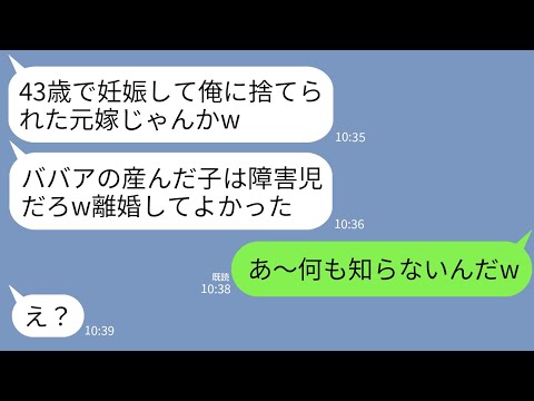 【LINE】43才で妊娠した私を汚物扱いして捨てた夫。数年後、元夫と友人の結婚式で再会「ババアが産んだ子は障害持ちだろw」→私「何にも知らないのねw」→元夫に真実を伝えたらwww