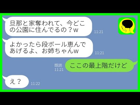 【LINE】6年前に私から旦那と家を奪ってホームレスにした妹とタワマンで再会「今どこの公園に住んでるの?w」→マウント女に今の私の生活を教えてあげた結果wwwスカッとするライン動画配信中です!