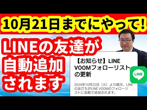LINEVOOMフォローリスト更新についての動画です。LINEの友達が自動で使いされるのを防ぐには10月21日までに設定を済ませておくといいと思います。