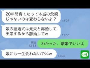 【LINE】20年間、実の子として育てた連れ子が結婚。妻「元夫と再婚するからあんたは用済みw」→要求通りに離婚したら連れ子の結婚式が大変なことにwww