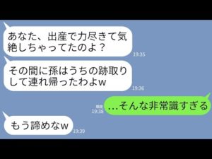 【LINE】出産直後、気絶してしまった私。目が覚めると姑が子供を奪い去ったあとだった…姑「この子は跡取りしてもらうw」→ブチ切れた私が赤ちゃんを命懸けで取り返した結果www