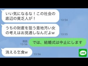 【LINE】結婚式で社長一族に嫁ぐ私を金目当てと決めつけワインをぶっかけてきた姑「貧乏人にやる金はないw」→結婚式中止後、息子の決意を知った義母から大慌てで鬼電がwww