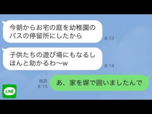【LINE】朝起きると家の庭が幼稚園のバス停にされてた→私「幼稚園に連絡しなきゃ」ある人物に頼んでボスママに反撃した結果…【スカッとする話】