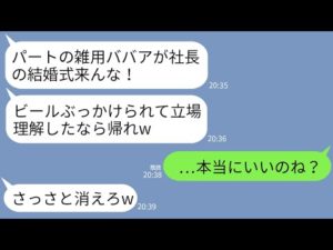 【LINE】社長の結婚式で私が花嫁と知らずビールを頭からぶっかけて追い返したゆとり新入社員「パートの雑用は帰れ!」→お望み通りに帰ったら女から300件の鬼電がwww