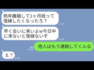 【LINE】自分から熟年離婚を要求してきたくせに1ヶ月で毎日復縁迫ってくる元夫「俺の大切さわかっただろ?早く復縁するぞ」→自己中夫を追い打ちかけて地獄に落とした結果www