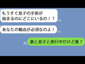 【LINE】激怒した妻「息子の手術にはあなたの輸血が必要なのにどこにいるの⁉︎」→しかし俺は妻と息子と旅行中で…