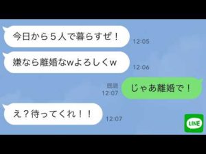 【LINE】突然、義両親と義妹を家に連れて来た夫「今日から5人で同居!嫌なら離婚なw」義家族「よろしくw」→私「じゃあ離婚で!」夫「え?待ってくれ!!」【スカッと】
